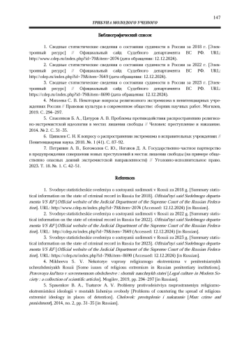 3. 	Сводные статистические сведения о состоянии судимости в России за 2023 г. [Электронный ресурс] // Официальный сайд Судебного департамента ВС РФ. URL: https://cdep.ru/index.php?id=79&item=8690 (дата обращения: 12.12.2024).