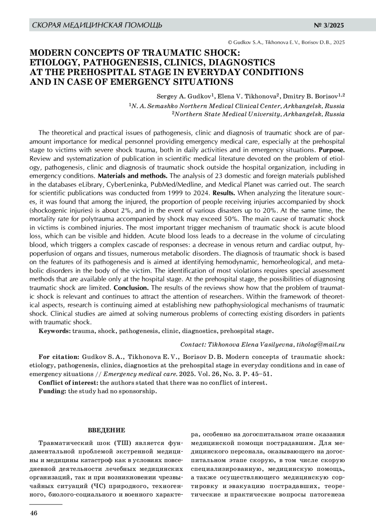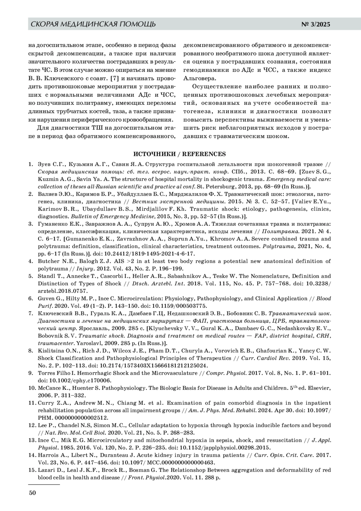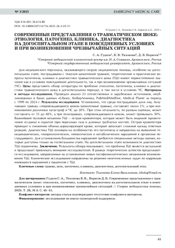 2. Валиев Э.Ю., Каримов Б. Р., Убайдуллаев Б. С., Мирджалилов Ф. Х. Травматический шок: этиология, патогенез, клиника, диагностика // Вестник экстренной медицины. 2015. № 3. С. 52-57.