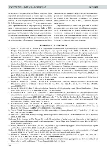 4. Butcher N.E., Balogh Z. J. AIS >2 in at least two body regions a potential new anatomical definition of polytrauma // Injury. 2012. Vol. 43, No. 2. Р. 196-199.