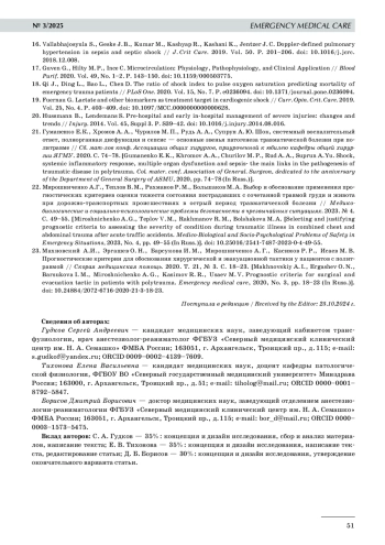 18. Qi J., Ding L., Bao L., Chen D. The ratio of shock index to pulse oxygen saturation predicting mortality of emergency trauma patients // PLoS One. 2020. Vol. 15, No. 7. Р. e0236094. DOI: 10.1371/journal.pone.0236094