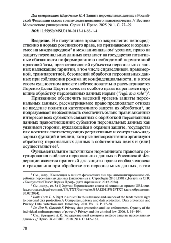 4. 	Tzanou M. Data protection as a fundamental right next to privacy? “Reconstructing” a not so new right // Int’l Data Privacy L. 2013. Vol. 3. N 2. P. 88-99.