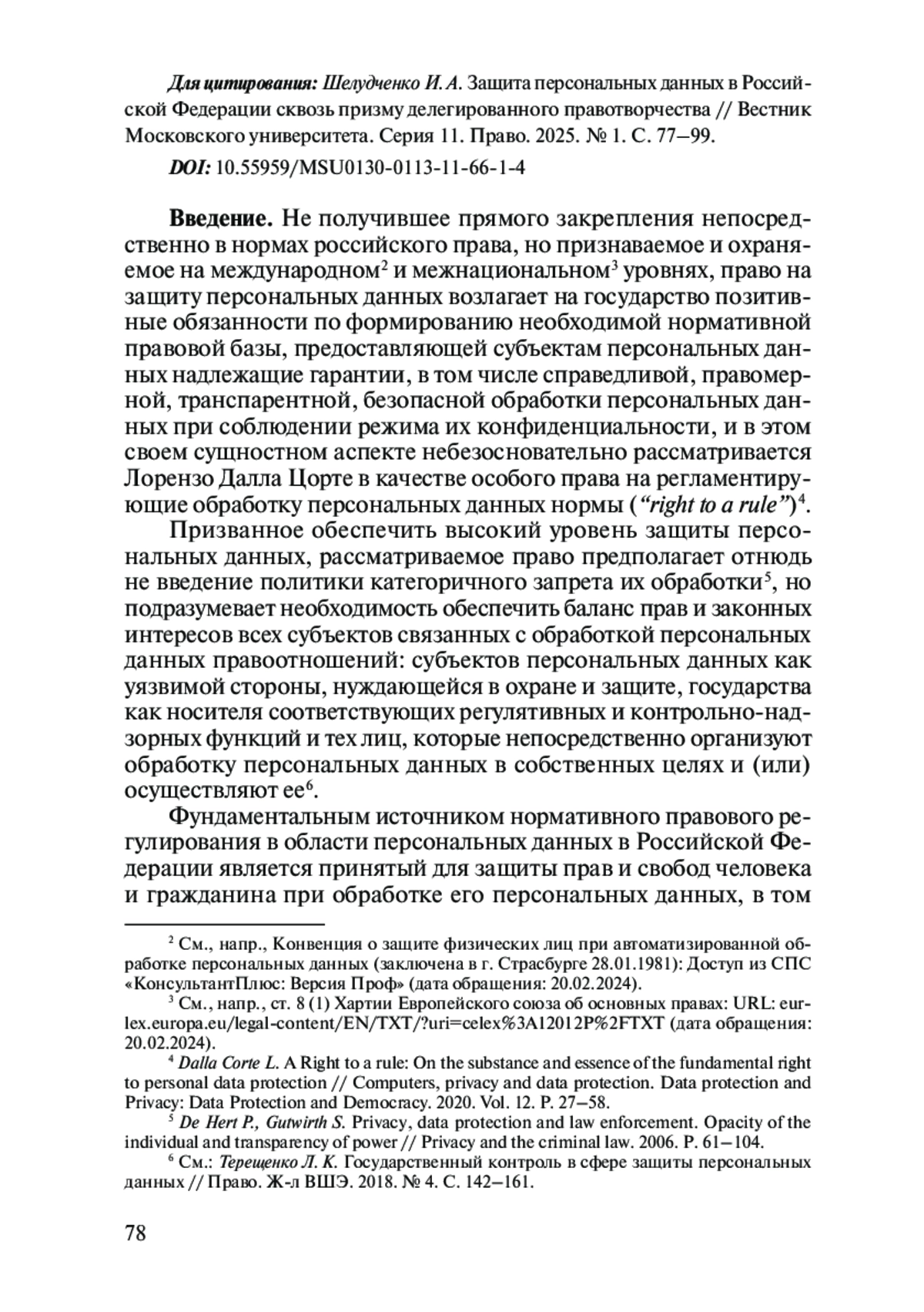 2. 	Dalla Corte L. A Right to a rule: On the substance and essence of the fundamental right to personal data protection // Computers, privacy and data protection. Data protection and Privacy: Data Protection and Democracy. 2020. Vol. 12. P. 27-58.