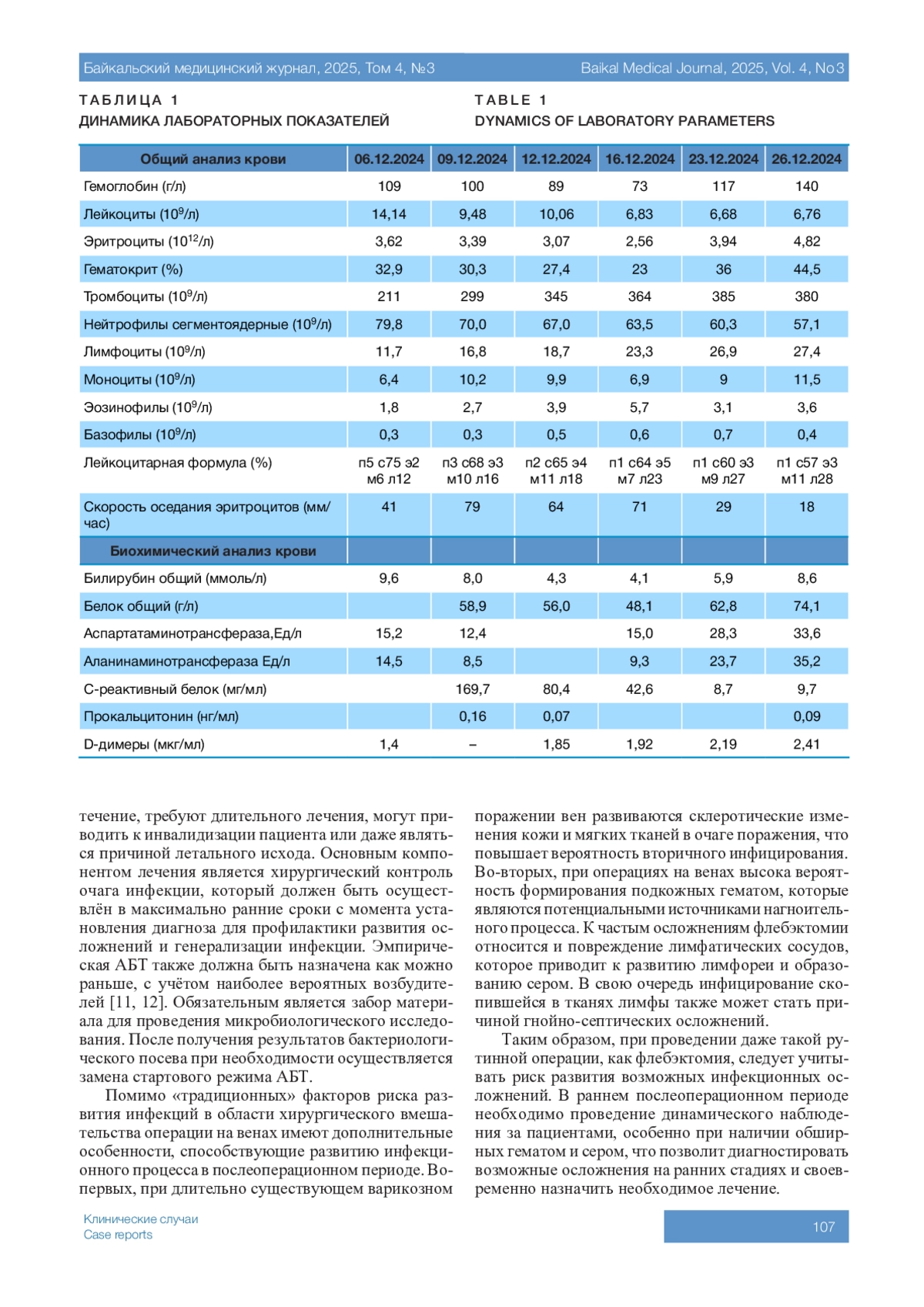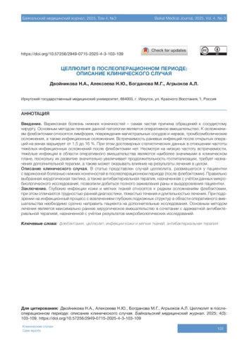 Введение. Варикозная болезнь нижних конечностей – самая частая причина обращений к сосудистому хирургу. Основным методом лечения данной патологии является оперативное вмешательство. К осложнениям флебэктомии относятся лимфорея, повреждения магистральных сосудов и нервов, тромбоэмболические осложнения, а также инфекционные осложнения. Встречаемость раневых инфекций после открытых операций на венах варьирует от 1,5 до 16 %. При этом достоверных статистических данных в отношении частоты тяжёлых инфекционных осложнений после флебэктомии нет. Несмотря на низкую частоту встречаемости, тяжёлые инфекции в области оперативного вмешательства являются наиболее значимыми в клиническом плане, поскольку их развитие значительно увеличивает продолжительность госпитализации, требует назначения дополнительной терапии, а также может оказывать влияние на результаты лечения в целом.