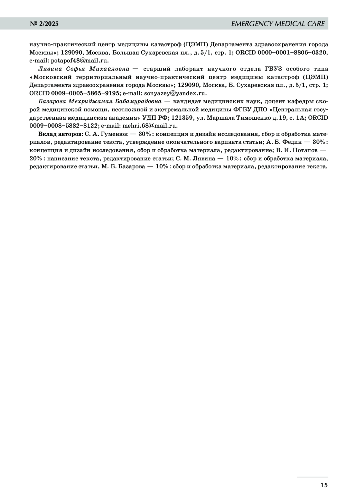 5. Мирошниченко А.Г., Стожаров В. В., Алимов Р. Р., Москвин В. А. Критерии оценки качества скорой и специализированной медицинской помощи в экстренной форме в стационарных условиях // Скорая медицинская помощь. 2019. № 1. С. 4-11.