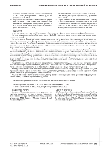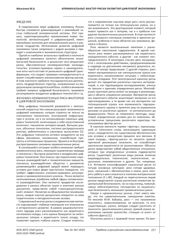 Статья: КРИМИНАЛЬНЫЕ ФАКТОР-РИСКИ РАЗВИТИЯ ЦИФРОВОЙ ЭКОНОМИКИ (2023)