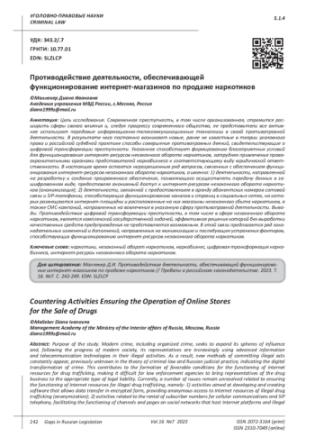 Shchurova A.S. Illegal trafficking of narcotic drugs and their analogues using computer technologies (Internet): criminal law and criminological research: abstract of thesis…. candidate of legal sciences: 12.00.08 [Place of defense: St. Petersburg. state University]. St. Petersburg, 2017. 26 p. EDN: RHPTHK