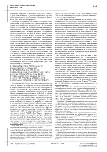 В настоящее время в противоправной деятельности (cybercrime-as a-service – киберпреступность как услуга) активно используется не только сотовая связь, но и SIP-телефония с функцией подмены абонентских номеров, отличающаяся от сотовой связи тем, что для ее использования не требуется телефонный аппарат и идентификационные модули средств мобильной связи (SIM-карты), а также подключение к базовой станции сотовой связи. Кроме того, при SIP-телефонии соединение устанавливается через специальное приложение по протоколу IP, причем при использовании сервисов анонимизации (VPN, TOR, SSL) установление реально использованного для соединения IP-адреса весьма затруднительно, однако при использовании правоохранительными органами современных технологий все же возможно. Указанное представляет собой еще один довод в пользу необходимости введения в российский законодательство изменений и дополнений, устанавливающих ответственность за разработку и создание программного обеспечения, предоставляющего анонимный доступ к интернет-ресурсам, доступ к которым ограничен на основании законодательства Российской Федерации.