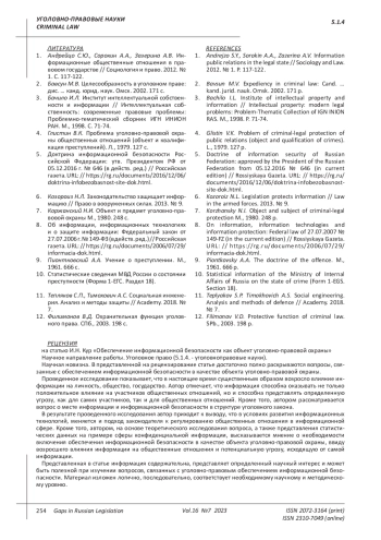 Статья: ОБЕСПЕЧЕНИЕ ИНФОРМАЦИОННОЙ БЕЗОПАСНОСТИ КАК ОБЪЕКТ УГОЛОВНО-ПРАВОВОЙ ОХРАНЫ (2023)