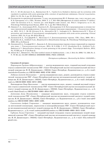18. 	Ливанов Г. А., Батоцыренов Б. В., Васильев С. А. Окислительный дистресс и его коррекция реамберином у больных с острым отравлением смесью психотропных веществ // Общая реаниматология. 2013. Т. IX, № 5. С. 18-23.