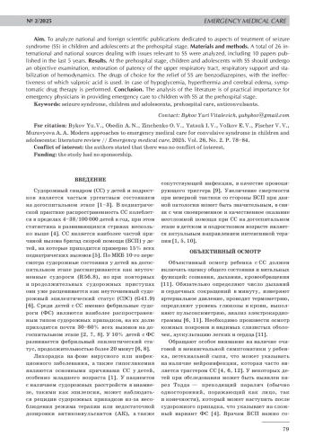 6. Шайтор В. М. Неотложная противосудорожная терапия у детей на догоспитальном этапе // Скорая медицинская помощь. 2019. № 1. С. 35-39.