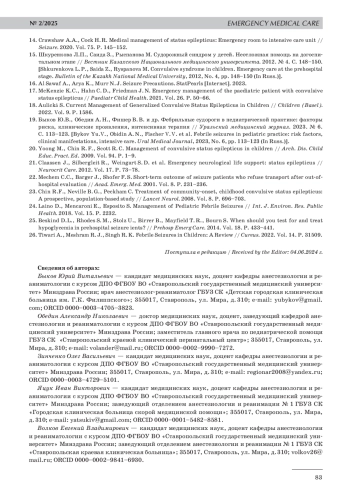 21. Claassen J., Silbergleit R., Weingart S. D. et al. Emergency neurological life support: status epilepticus // Neurocrit Care. 2012. Vol. 17. P. 73-78.