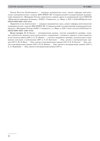 В 2025 году журналу «Скорая медицинская помощь» исполняется 25 лет. Журнал является печатным органом Российского общества скорой медицинской помощи, на страницах журнала публикуются решения Профильной комиссии Минздрава России по направлению «Скорая медицинская помощь», обсуждаются актуальные вопросы скорой медицинской помощи, службы медицины катастроф, проекты клинических рекомендаций. Цель исследования: провести анализ публикационной активности журнала за 25 лет. Материалы и методы. Анализ публикационной активности проведен по данным научной электронной библиотеки Elibrary. ru. Результаты исследования. За период с 01.01.2000 по 31.03.2025 издано 102 номера (выпуска) журнала с общим количеством статей 2344. Журнал включен в Перечень рецензируемых научных изданий, в которых должны быть опубликованы результаты диссертаций на соискание ученой степени кандидата наук и доктора наук по семи научным специальностям (категория 2). Отмечается устойчивая тенденция к увеличению числа цитирования статей, пятилетнего и двухлетнего импакт-фактора, среднего индекса Хирша авторов статей. Число цитирований в 2008 году составило 31, в 2023 году — 158; двухлетний импакт-фактор РИНЦ в 2008 году — 0,11, в 2023 году — 0,40; пятилетний импакт-фактор РИНЦ в 2008 году — 0,05, в 2023 году — 0,40; средний индекс Хирша авторов публикаций в 2008 году — 3,68, в 2023 году — 7,36. Заключение. Журнал «Скорая медицинская помощь» активно развивается и имеет потенциал для включения в Белый список научных изданий.