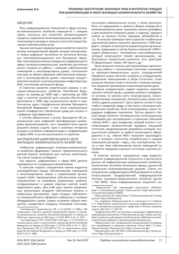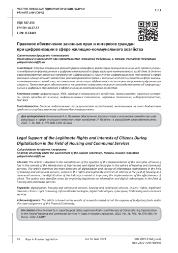 Статья: ПРАВОВОЕ ОБЕСПЕЧЕНИЕ ЗАКОННЫХ ПРАВ И ИНТЕРЕСОВ ГРАЖДАН ПРИ ЦИФРОВИЗАЦИИ В СФЕРЕ ЖИЛИЩНО-КОММУНАЛЬНОГО ХОЗЯЙСТВА (2023)