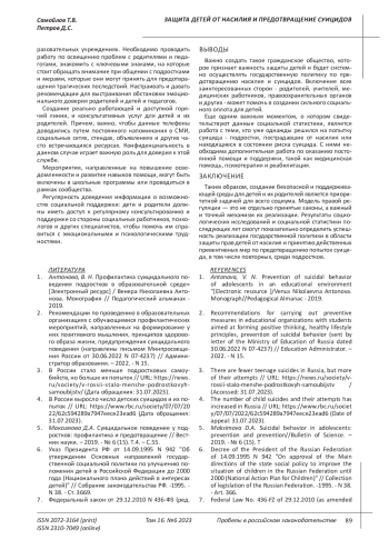 Antonova, V. N. Prevention of suicidal behavior of adolescents in an educational environment “[Electronic resource ]/Venus Nikolaevna Antonova. Monograph//Pedagogical Almanac - 2019.