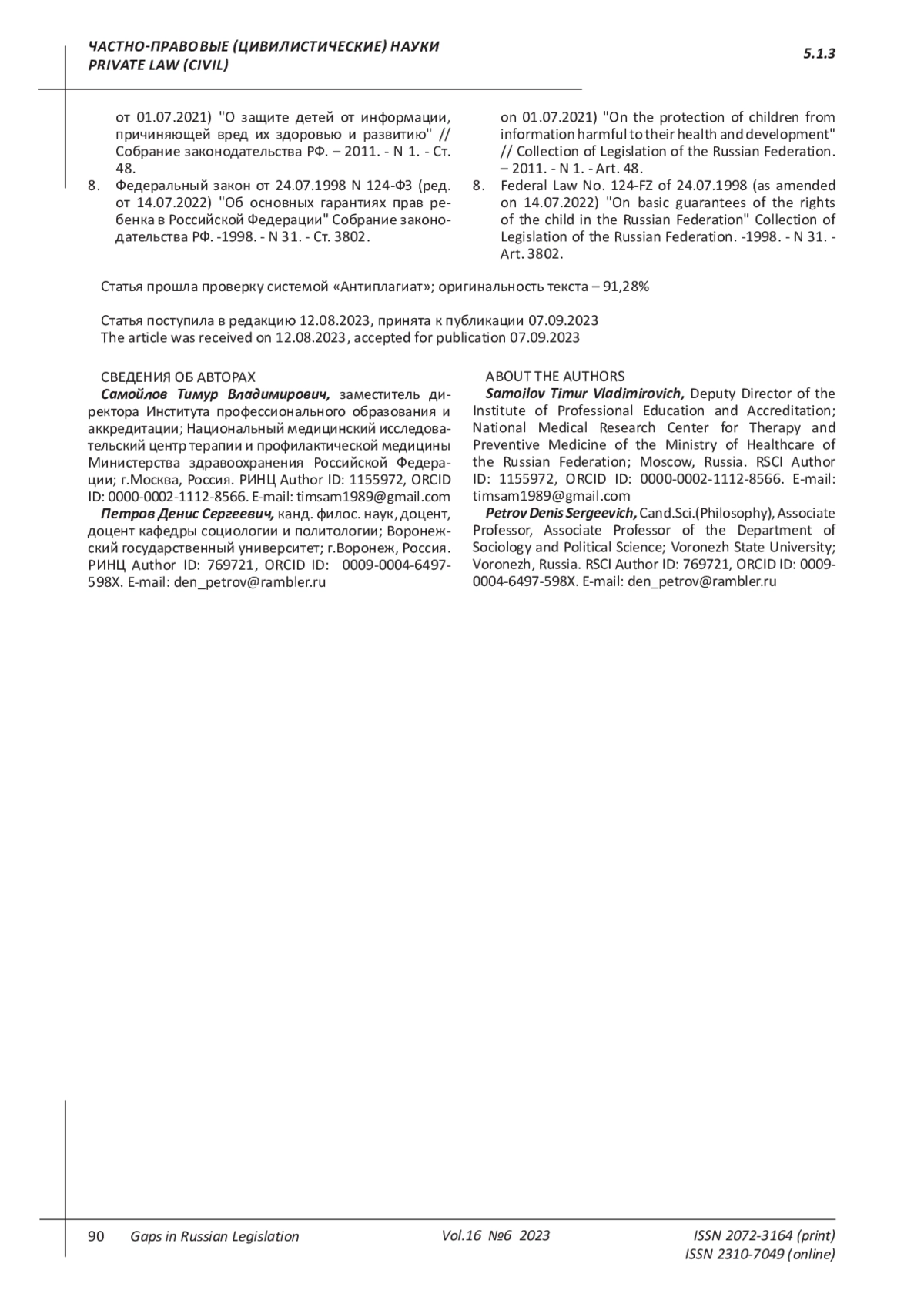 Federal Law No. 124-FZ of 24.07.1998 (as amended on 14.07.2022) “On basic guarantees of the rights of the child in the Russian Federation” Collection of Legislation of the Russian Federation. -1998. - N 31. - Art. 3802.