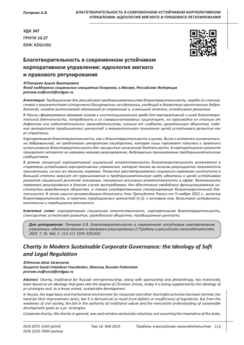 3. 	Кузина О. Е., Чернышева М. В. Корпоративная благотворительность и ответственность: обоснование понятий// Мониторинг общественного мнения: Экономические и социальные перемены. 2015. № 4. С. 154-165. EDN: UTDPIO