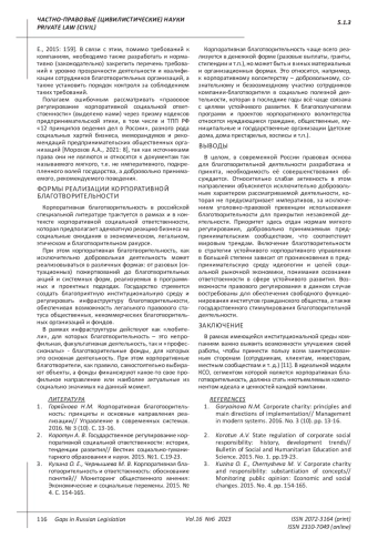 2. 	Коротун А. В. Государственное регулирование корпоративной социальной ответственности: история, тенденции развития// Вестник социально-гуманитарного образования и науки. 2015. №1. С.19-23. EDN: VBGFIN