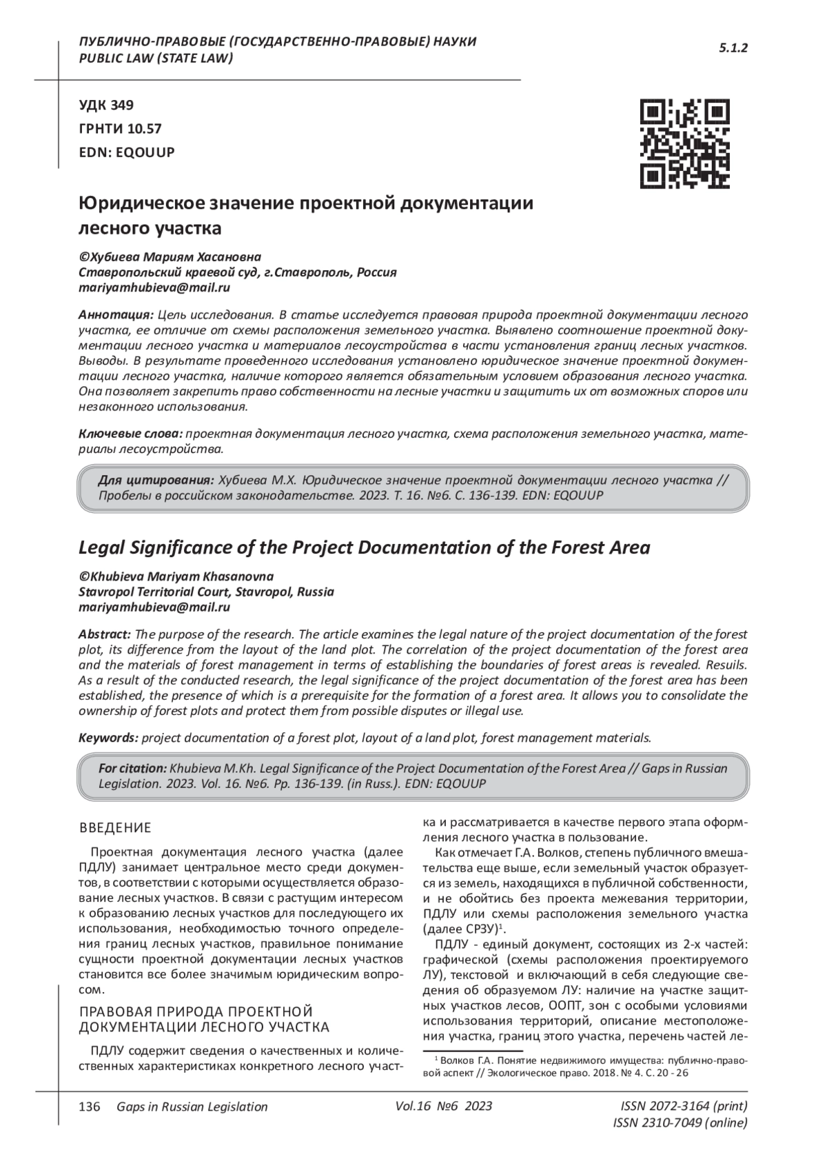 Volkov G.A. The concept of immovable property: public-legal aspect // Environmental law. 2018. No. 4. pp. 20-26. EDN: XYNJFR