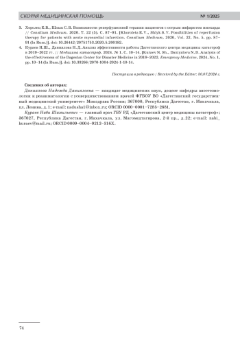 3. 	Хоролец Е.В., Шлык С. В. Возможности реперфузионной терапии пациентов с острым инфарктом миокарда // Consilium Medicum. 2020. Т. 22 (5). С. 87-91.