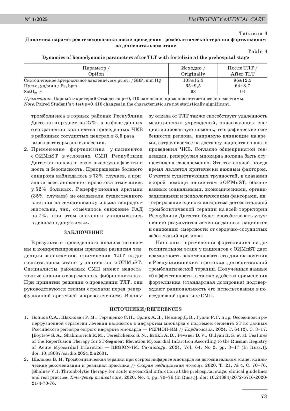 2. 	Шальнев В. И. Тромболитическая терапия при остром инфаркте миокарда на догоспитальном этапе: клинические рекомендации и реальная практика // Скорая медицинская помощь. 2020. Т. 21, № 4. С. 70-76.