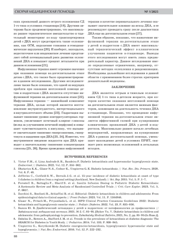 11. Edge J.A., Nunney I., Dhatariya K. K. Diabetic ketoacidosis in an adolescent and young adult population in the UK in 2014: A national survey comparison of management in paediatric and adult settings // Diabet. Med. 2016. Vol. 33. P. 1352-1359.