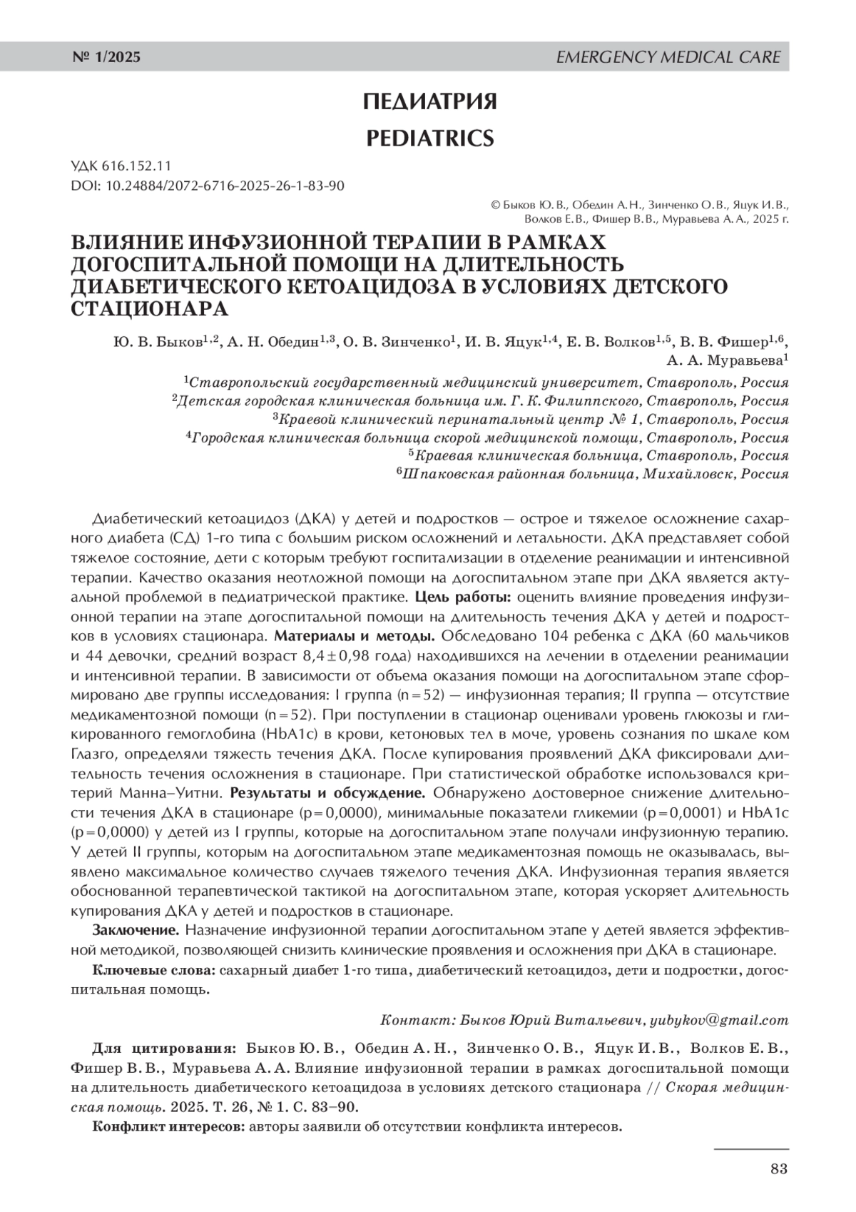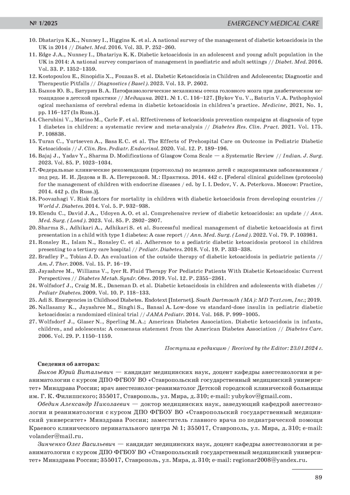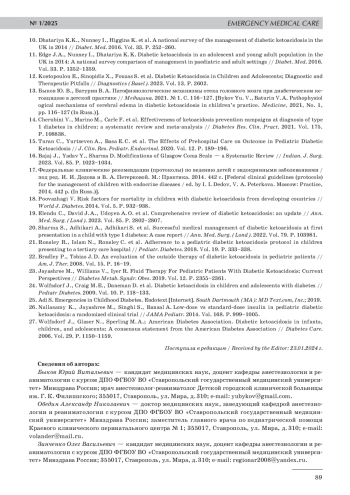 15. Turan C., Yurtseven A., Basa E. C. et al. The Effects of Prehospital Care on Outcome in Pediatric Diabetic Ketoacidosis // J. Clin. Res. Pediatr. Endocrinol. 2020. Vol. 12. P. 189-196.