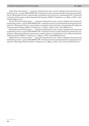 Использование лидокаина в схеме в мультимодальной анестезии с целью снижения доз анестетиков по сравнению с классическим обезболиванием — перспективное направление современной анестезиологии. Широкое применение в анестезиологической практике местных анестетиков позволило выявить их существенное влияние на нейромышечный профиль. Однако имеющиеся исследования по изучению комбинаций этих препаратов с мышечными релаксантами носят весьма разноречивый характер. Цель исследования: изучить влияния предоперационного внутривенного введения лидокаина на нервно-мышечную проводимость. Материалы и методы исследования. С целью оценки влияния лидокаина на нервно-мышечную проводимость обследовано 60 пациентов (ASA I–II), которым была проведена лапароскопическая холецистэктомия по поводу хронического калькулезного холецистита. Были сформированы две группы пациентов: принимавшие лидокаин в дозе 2 мг·кг‑1 (30 человек, группа 1) и те, кто использовал 0,9% раствор натрия хлорида (физиологический раствор) (30 человек, группа 2). Нервно-мышечную проводимость оценивали с помощью метода акцелеромиографии (монитор TOF-Watch SX). Результаты. Скорость восстановления нервно-мышечной проводимости были в пределах 47 и 48 мин в 1‑й и 2‑й группах аналогично (р=0,92). Заключение. В результате исследования установлено, что лидокаин статистически не оказывал значимого влияния на нервно-мышечную передачу.