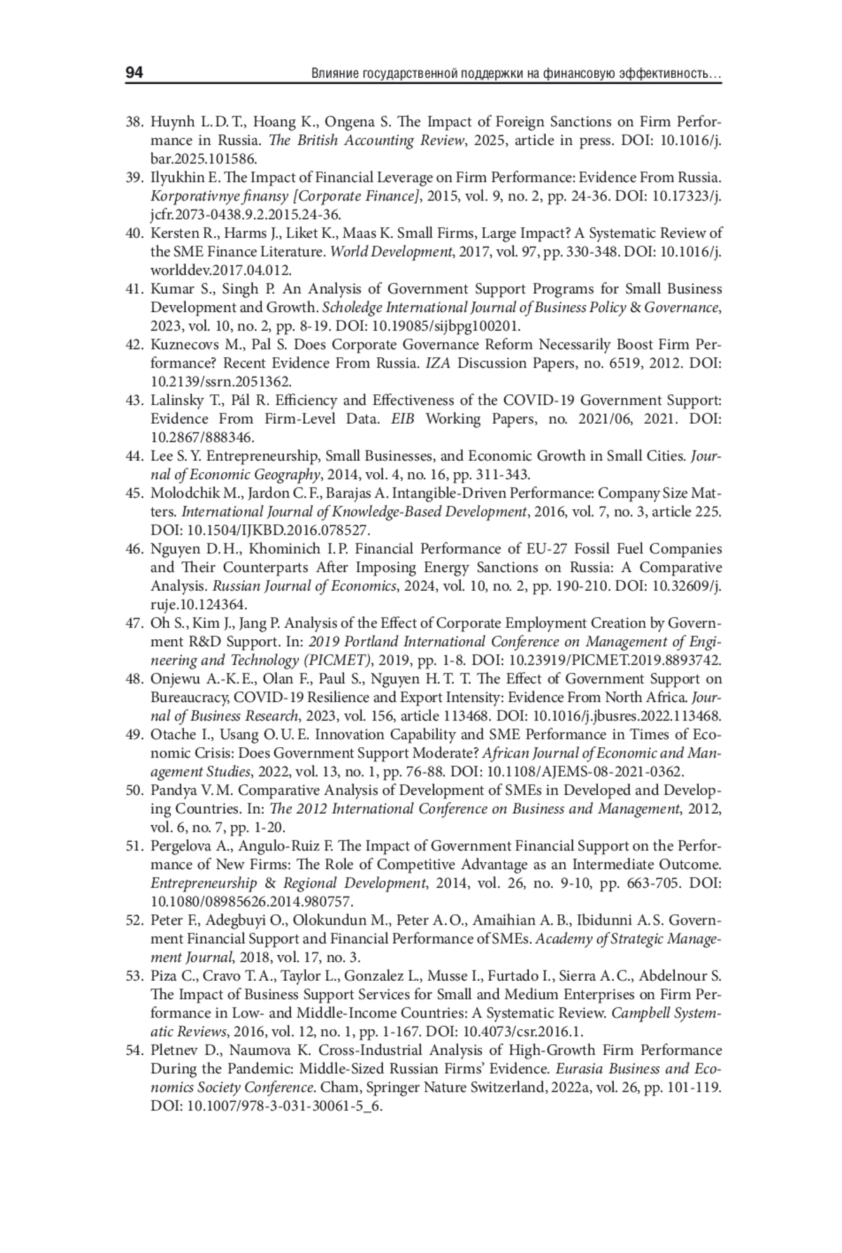 38. Huynh L. D. T., Hoang K., Ongena S. The Impact of Foreign Sanctions on Firm Performance in Russia // The British Accounting Review. 2025. Article in press. https://doi.org/10.1016/j.bar.2025.101586.