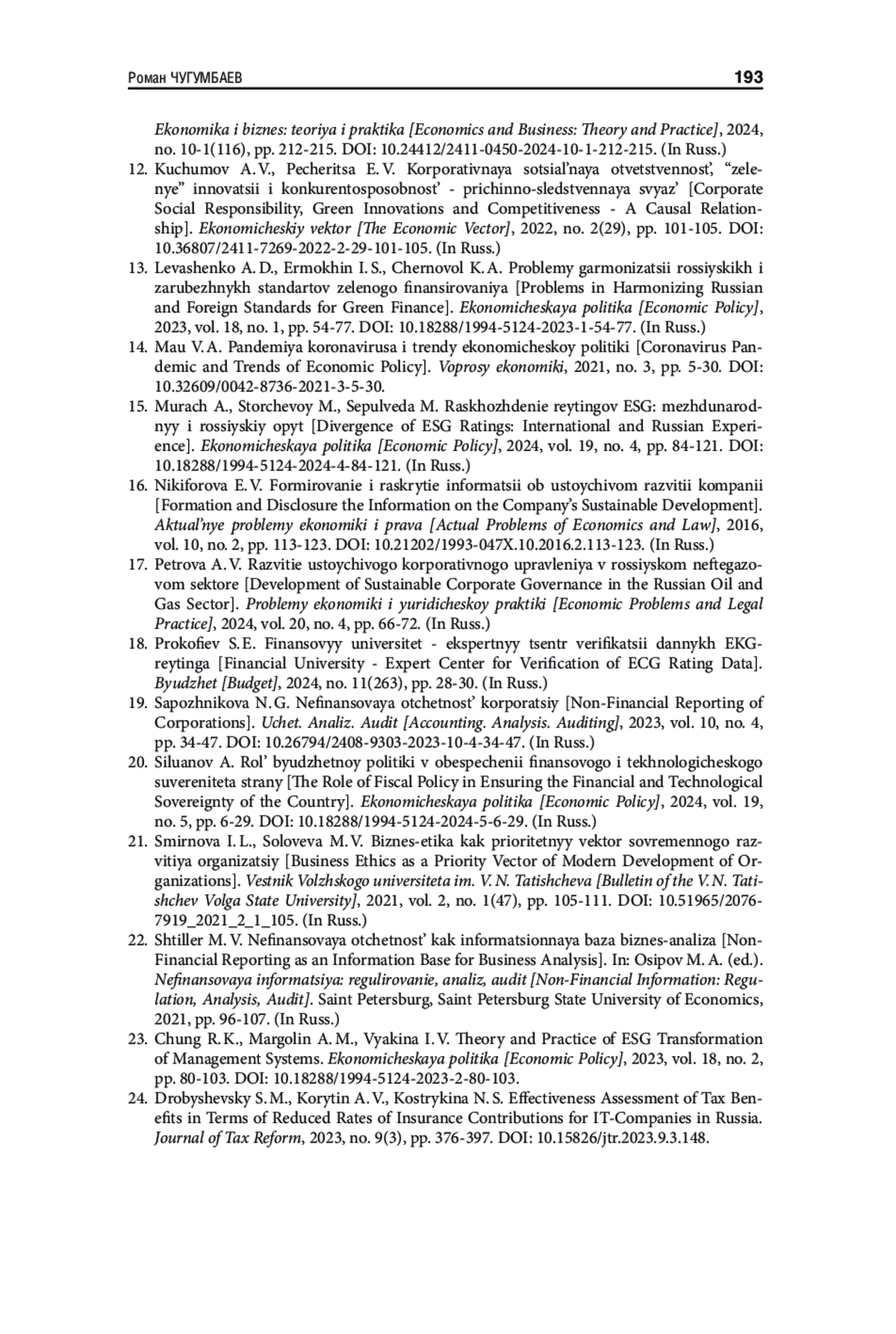 23. Chung R. K., Margolin A. M., Vyakina I. V. Theory and Practice of ESG Transformation of Management Systems // Экономическая политика. 2023. Т. 18. № 2. С. 80-103. https://doi.org/10.18288/1994-5124-2023-2-80-103.