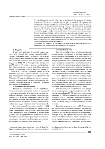 9. Бабурин В. В. Уголовно-правовое регулирование и практика применения штрафа в Монголии / В. В. Бабурин, Л. В. Иногамова-Хегай, Ж. Энхтур // Вестник Кузбасского института. - 2023. - № 3 (56). - С. 9-21.