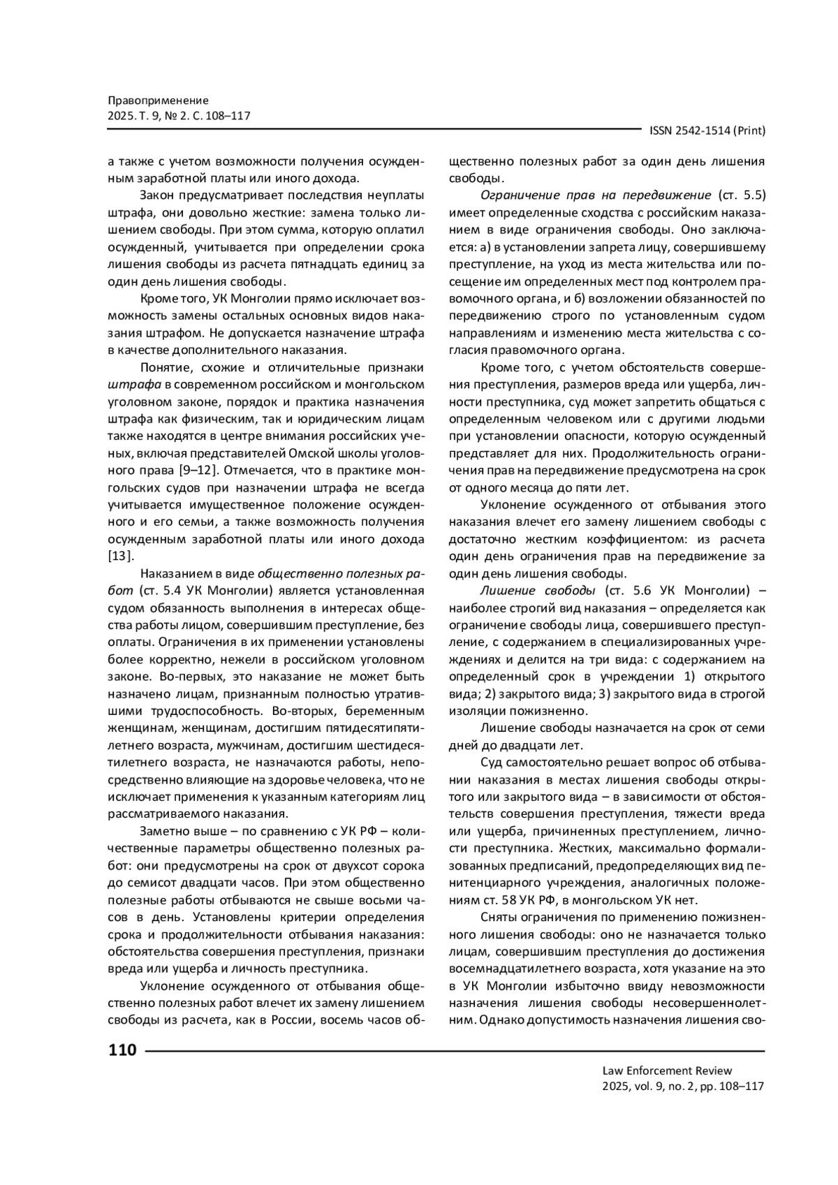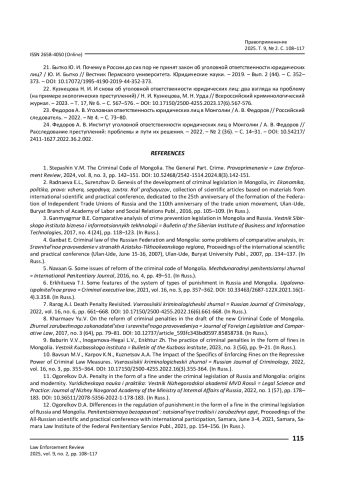 6. Эрхитуева Т. И. Некоторые особенности системы видов наказания России и Монголии / Т. И. Эрхитуева // Уголовно-исполнительное право. - 2021. - Т. 16, № 3. - С. 357-362. - https://doi.org/10.33463/2687-122X.2021.16(14).3.357-362.
