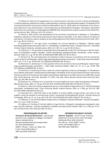 24. Федоров А. В. Институт уголовной ответственности юридических лиц в Монголии / А. В. Федоров // Расследование преступлений: проблемы и пути их решения. - 2022. - № 2 (36). - С. 14-31. - https://doi.org/10.54217/ 2411-1627.2022.36.2.002.