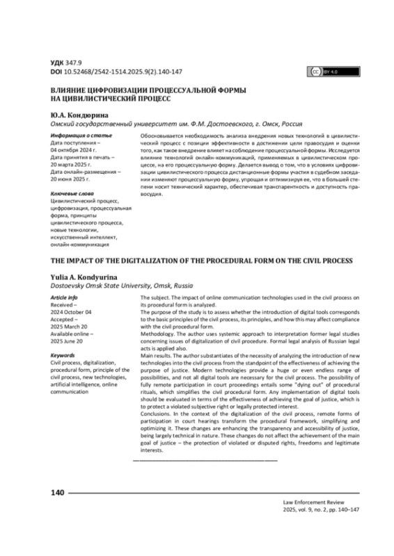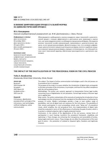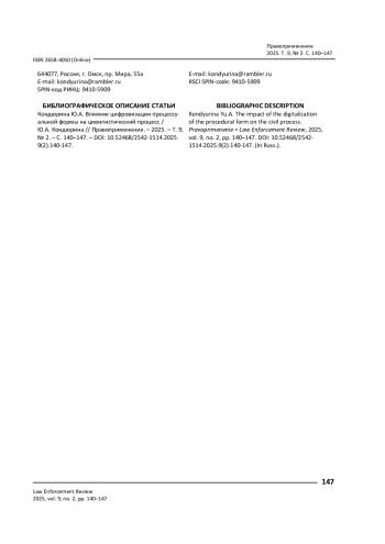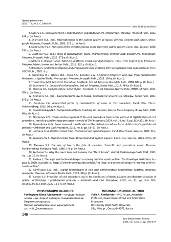 4. Кондюрина Ю. А. Принципы цивилистического процесса в системе электронного правосудия : дис. … канд. юрид. наук / Ю. А. Кондюрина. - Саратов, 2020. - 196 с.