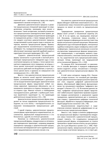 15. Незнамов А. В. Тенденции развития гражданской процессуальной формы в условиях цифровизации гражданского процесса / А. В. Незнамов // Вестник гражданского процесса. - 2024. - Т. 14, № 3. - С. 213-221.