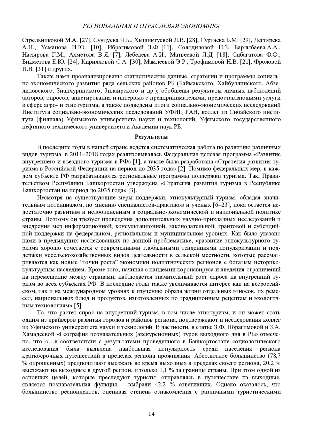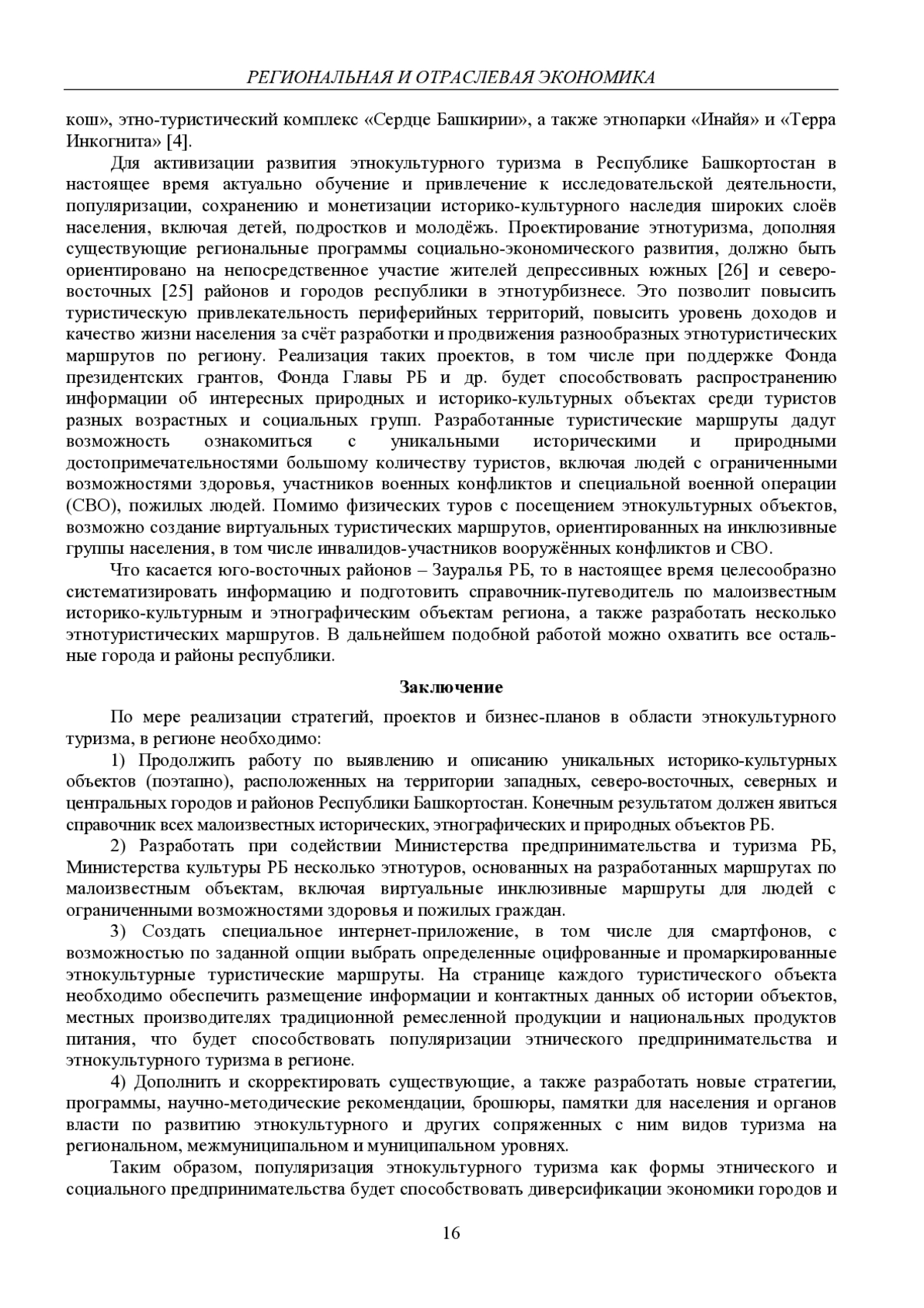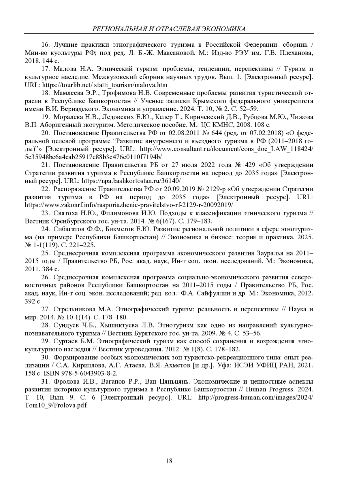 31. Фролова И.В., Вагапов Р.Р., Ван Цяньцянь. Экономические и ценностные аспекты развития историко-культурного туризма в Республике Башкортостан // Human Progress. 2024. Т. 10, Вып. 9. С. 6 [Электронный ресурс]. URL: http://progress-human.com/images/2024/ Tom10_9/Frolova.pdf. EDN: XJDGON