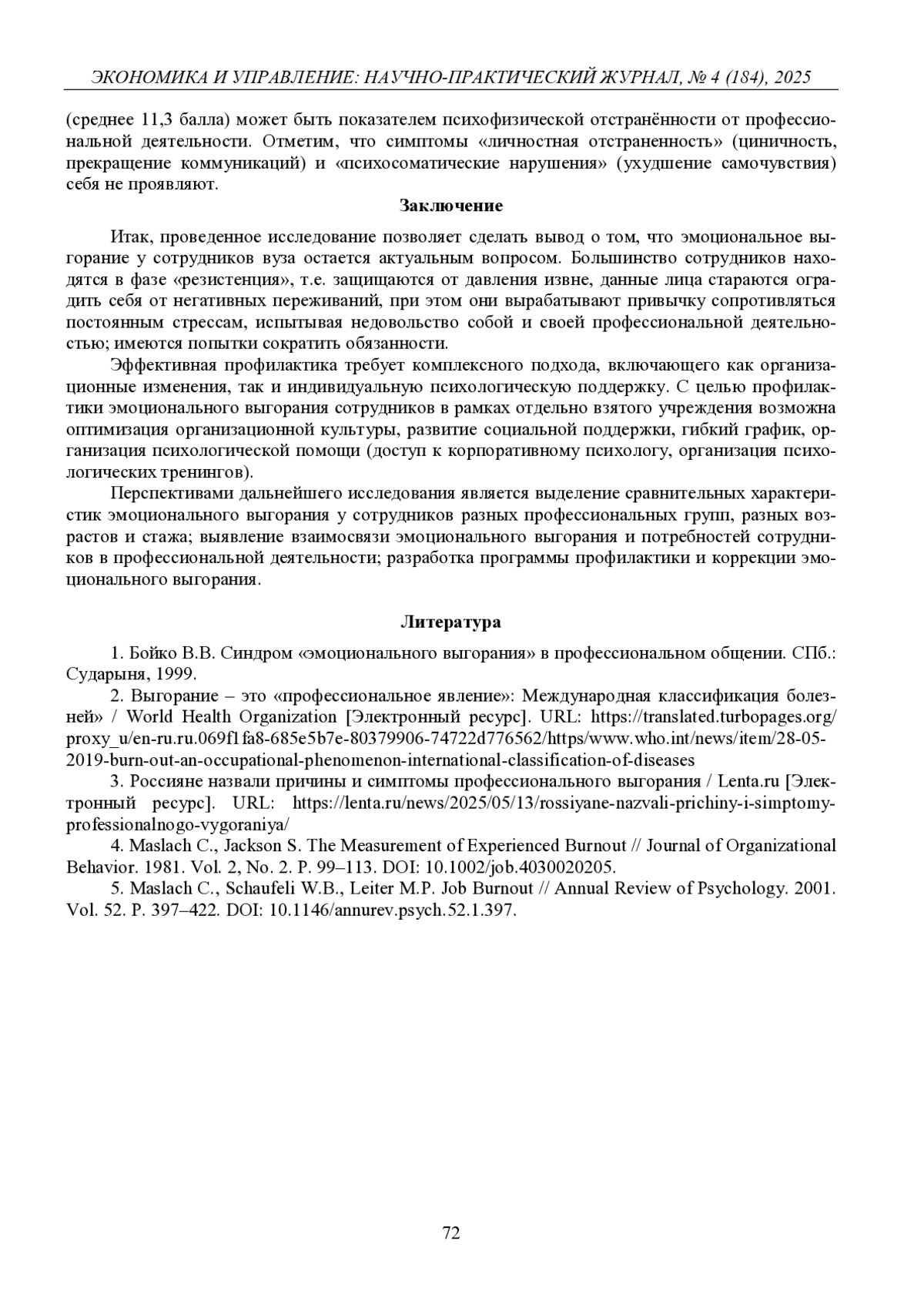 3. Россияне назвали причины и симптомы профессионального выгорания / Lenta.ru [Электронный ресурс]. URL: https://lenta.ru/news/2025/05/13/rossiyane-nazvali-prichiny-i-simptomy-professionalnogo-vygoraniya.