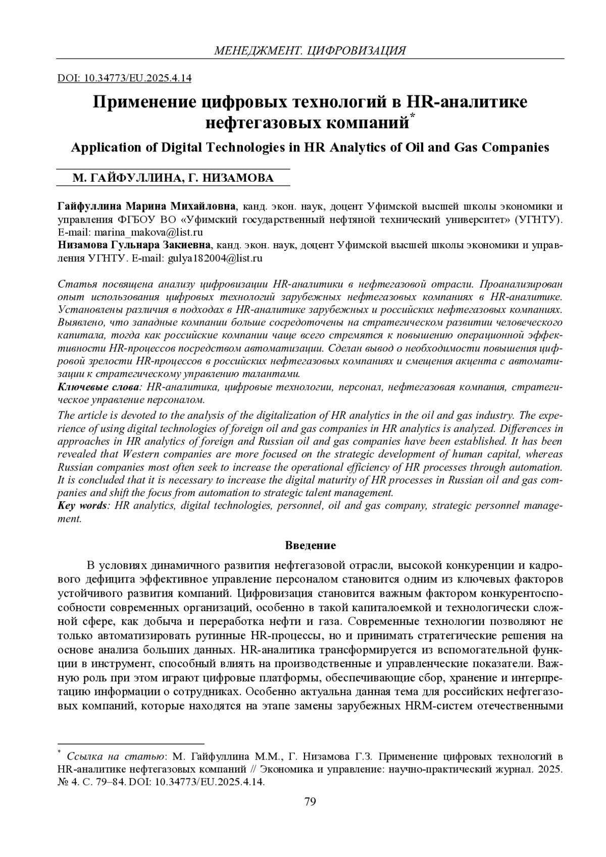 2. Гайфуллина М. М., Низамова Г.З. Формирование ключевых показателей эффективности управления персоналом нефтегазовой компании // Экономика и управление: научно-практический журнал. 2022. № 4(166). С. 85-90. DOI: 10.34773/EU.2022.4.15