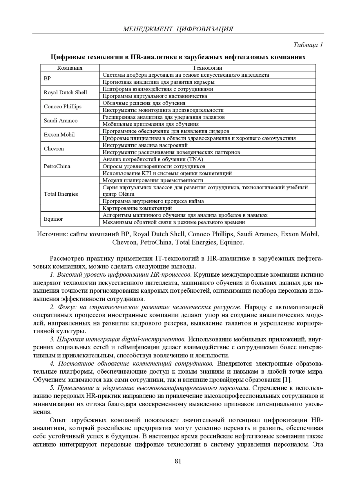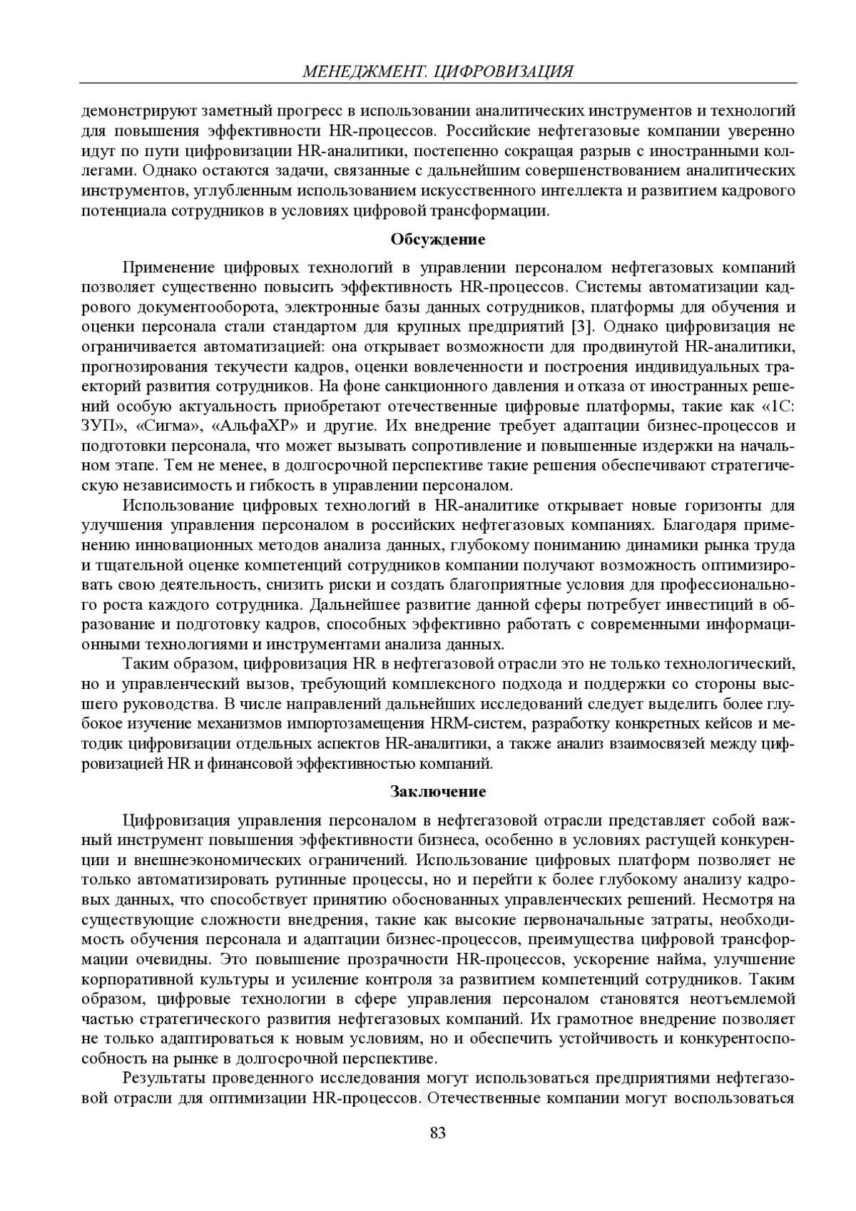 10. Хосрофова И.С. Переход к цифровым технологиям управления персоналом: преимущества и вызовы для предприятий в топливно-энергетическом комплексе // Первый экономический журнал. 2023. № 11(341). С. 32-39. DOI: 10.58551/20728115_2023_11_32 EDN: MLSAPZ