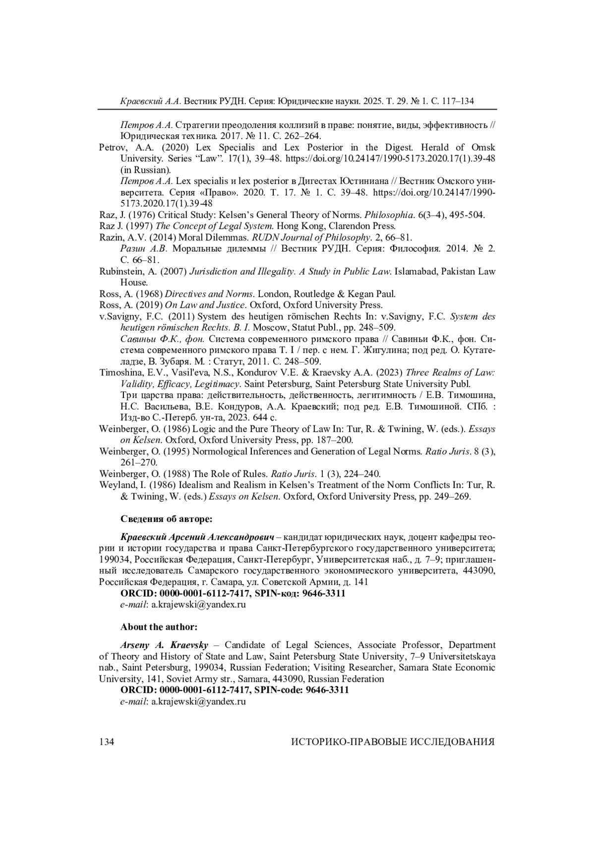 27. Kraevsky, A.A. (2015) Hans Kelsen’s Pure Theory of Law and Modern Legal Positivism. Proceedings of Higher Educational Institutions. Pravovedenie. 2, pp. 88-125.