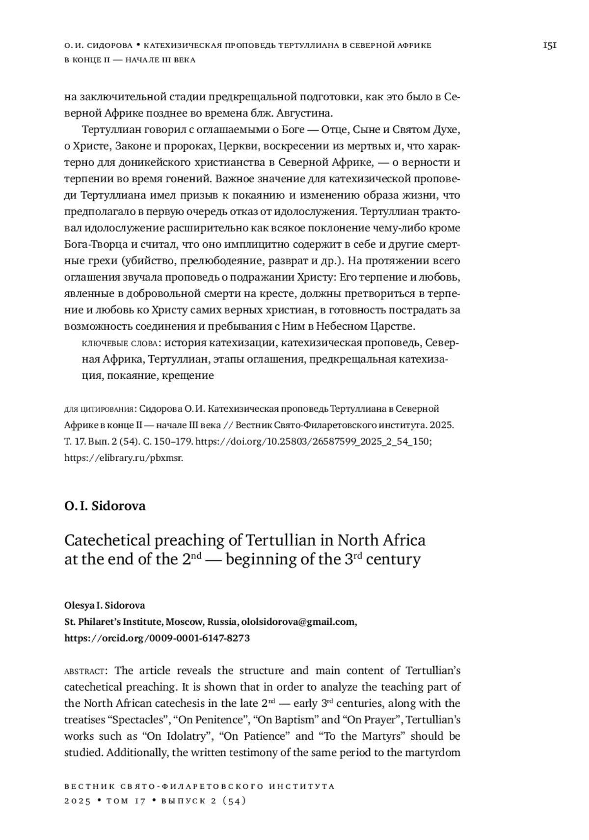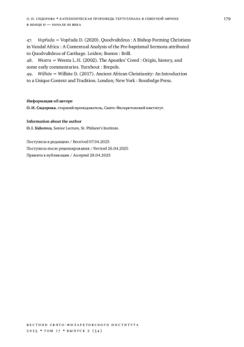 10. 	Сидорова О. И. Образ Матери-Церкви в контексте раннехристианской катехизации // Христианское чтение. 2024. № 1. С. 23-34. DOI: 10.47132/1814-5574_2024_1_23 EDN: XQIKRE