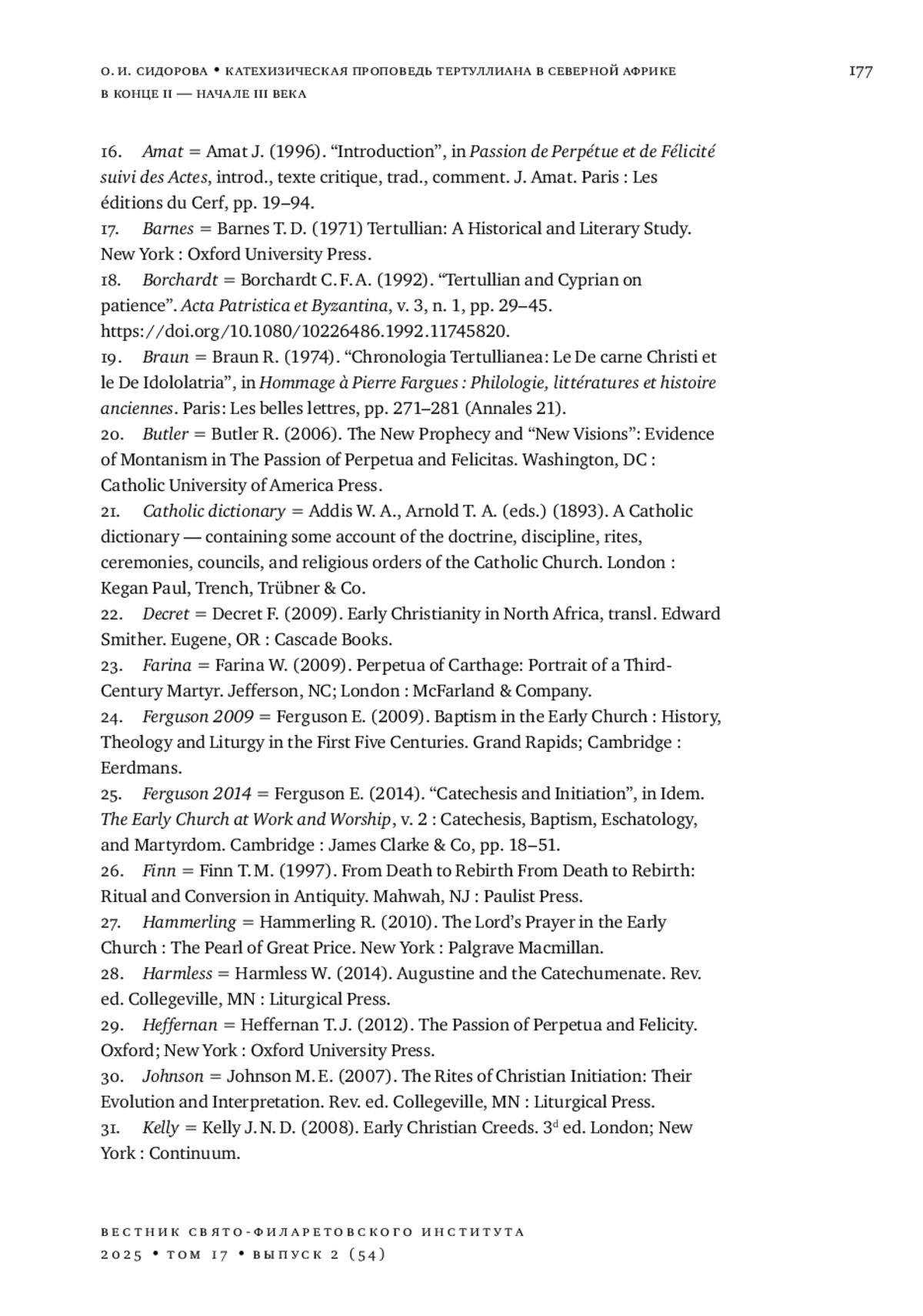 15. 	Шмаина-Великанова А. И., Давидоглу С. Н. Богословие “Страстей свв. Перпетуи и Фелицитаты” и ранние мученичества // Studia Religiosa Rossica: научный журнал о религии. 2024. № 4. С. 89-119. DOI: 10.28995/2658-4158-2024-4-89-119 EDN: CLPOXC
