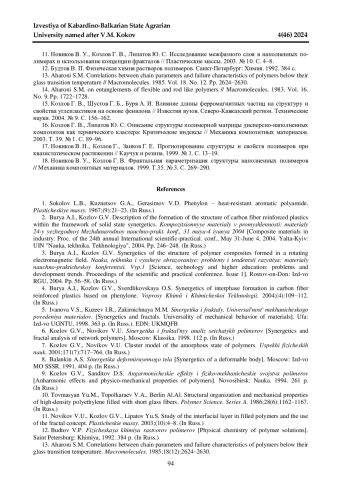 18. 	Новиков В. У., Козлов Г. В. Фрактальная параметризация структуры наполненных полимеров // Механика композитных материалов. 1999. Т.35. № 3. С. 269-290.