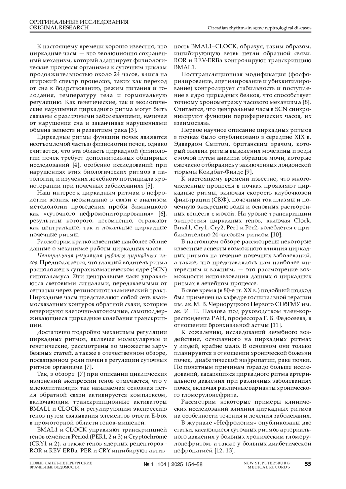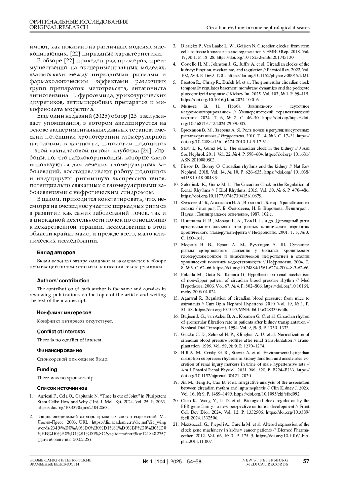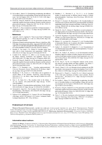 5. 	Preston R., Chrisp R., Dudek M. et al. The glomerular circadian clock temporally regulates basement membrane dynamics and the podocyte glucocorticoid response // Kidney Int. 2025. Vol. 107, № 1. P. 99-115. DOI: 10.1016/j.kint.2024.10.016