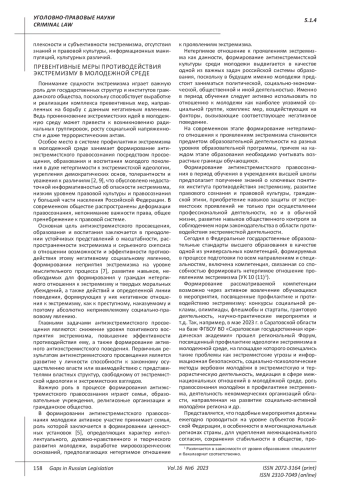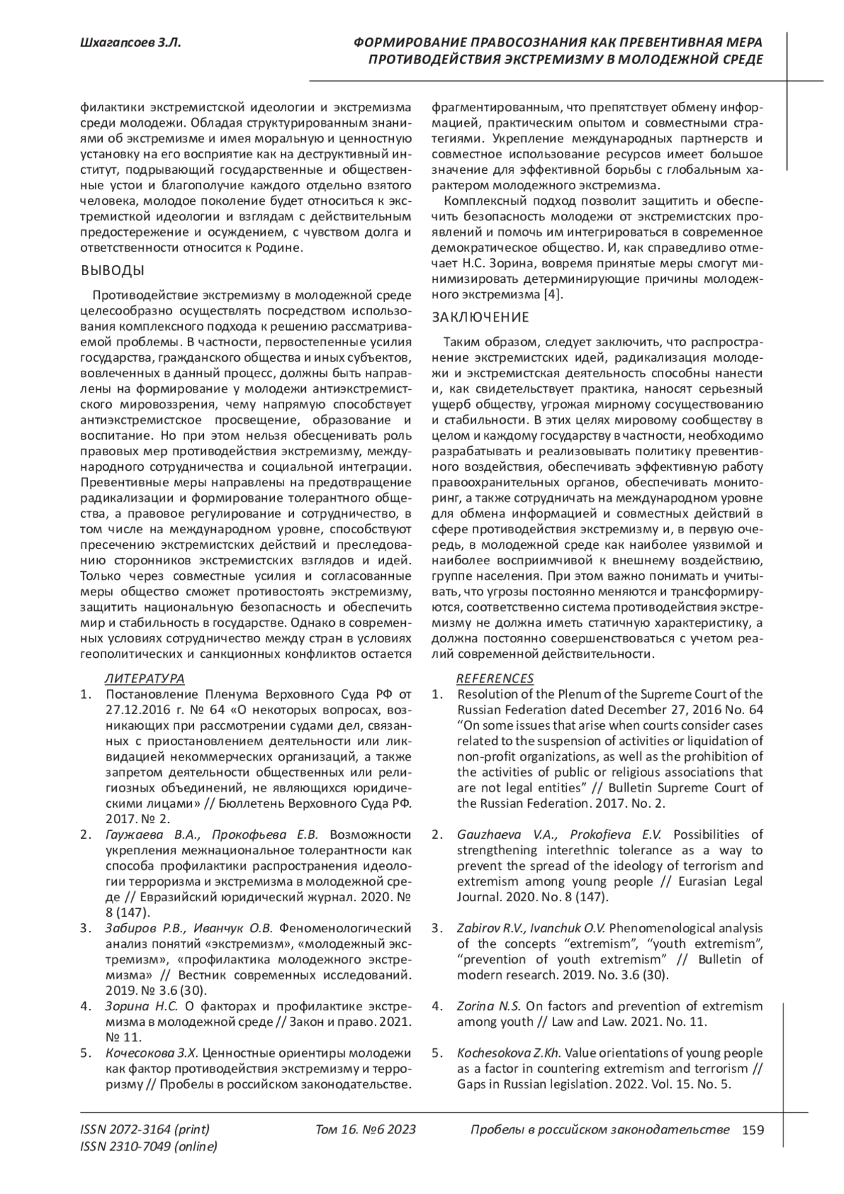 4. Зорина Н.С. О факторах и профилактике экстремизма в молодежной среде // Закон и право. 2021. № 11. EDN: SALEIK