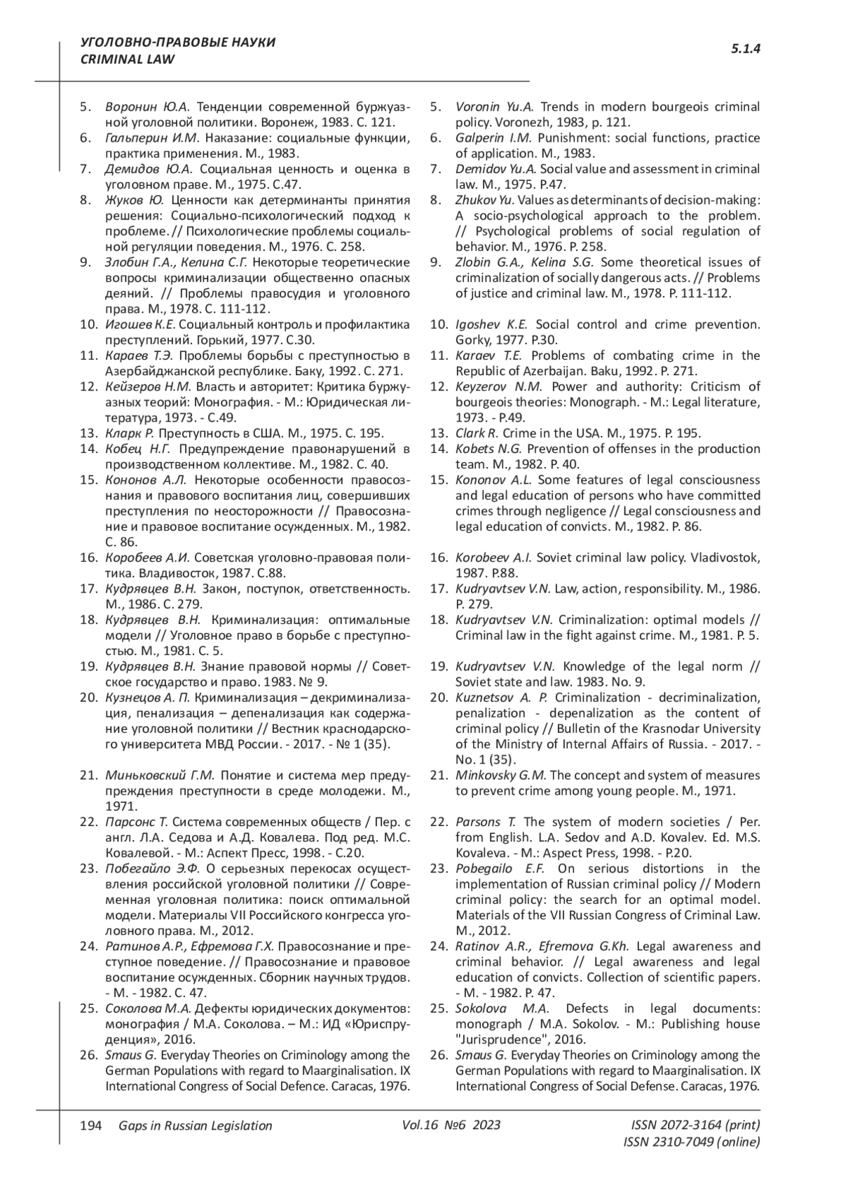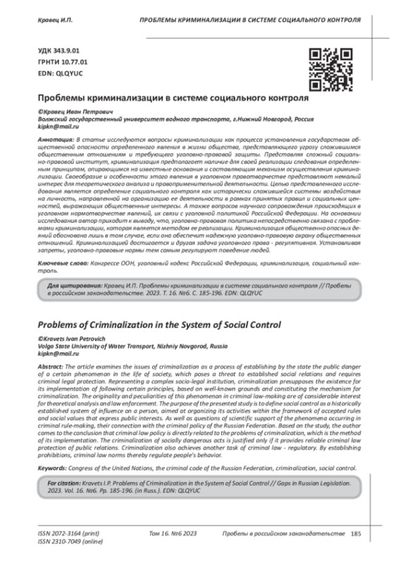20. Кузнецов А. П. Криминализация - декриминализация, пенализация - депенализация как содержание уголовной политики // Вестник краснодарского университета МВД России. - 2017. - № 1 (35). EDN: YITPOJ