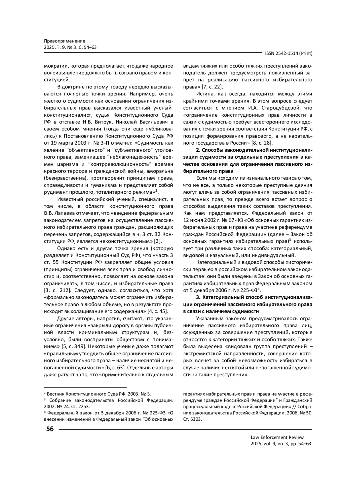 18. Красинский В. В. О правовых позициях Европейского суда по правам человека и Конституционного Суда Российской Федерации по вопросам ограничения избирательных прав в связи с наличием судимости / В. В. Красинский // Современное право. - 2014. - № 2. - С. 34-41.