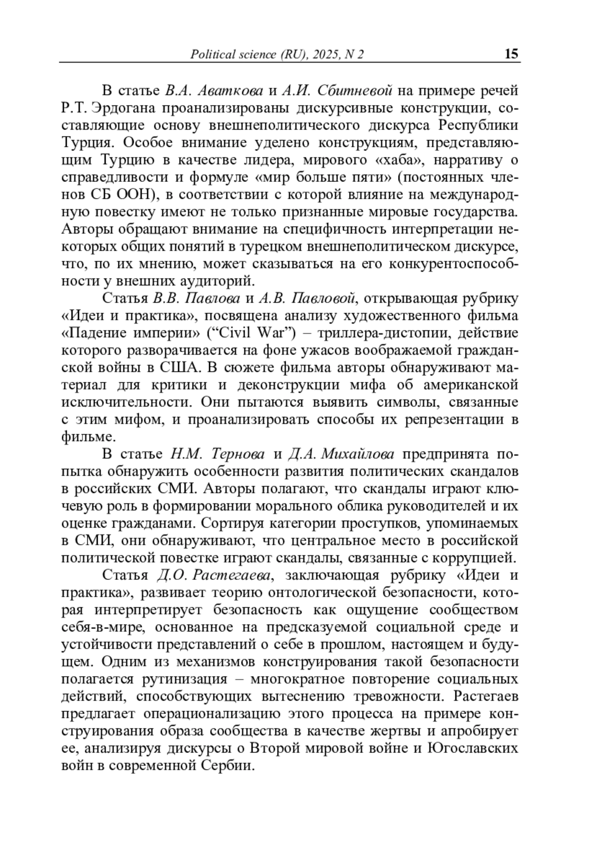 Вступительное слово редакции журнала “ПОЛИТИЧЕСКАЯ НАУКА” к выпуску №2 (2025г.)