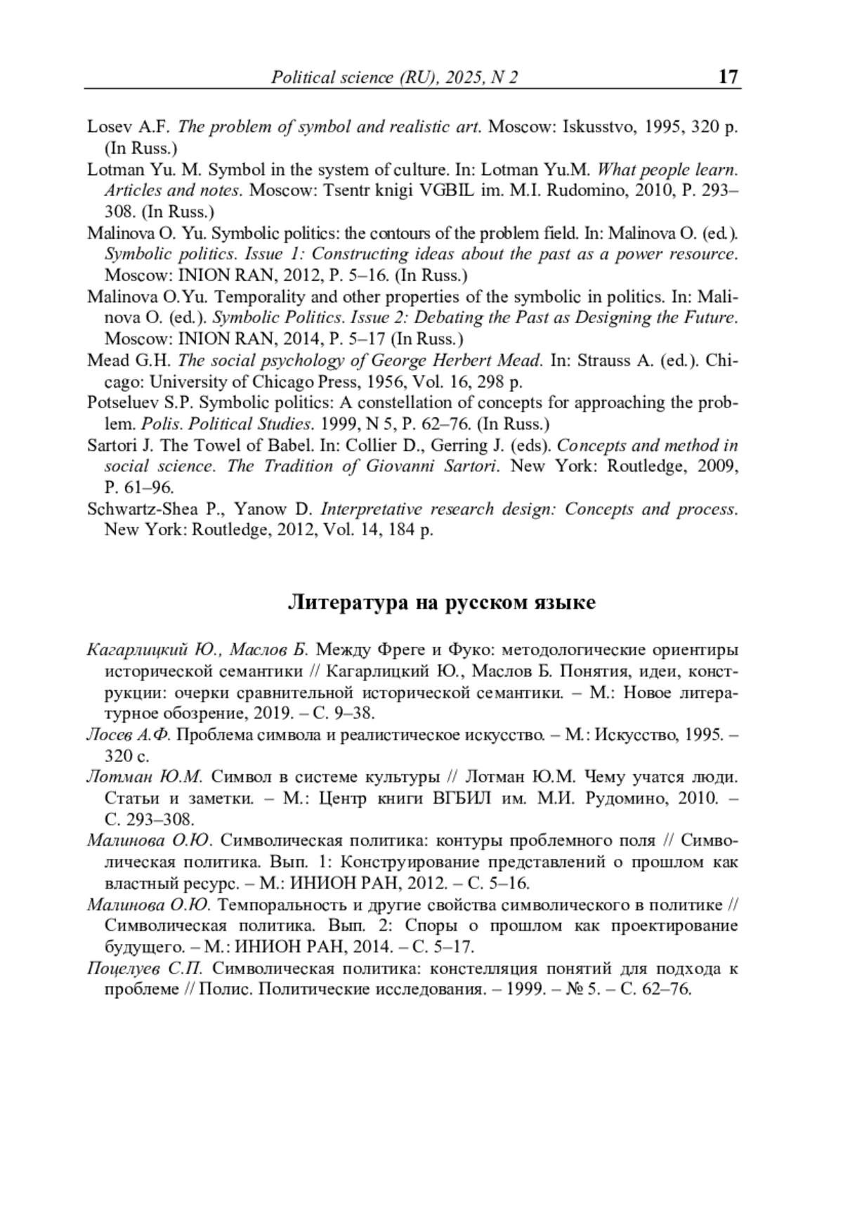 13. Соловьев А.И. Доктринальная символизация и политическое просторечие нарративов. Что меняется в публичном поле? // Полис. Политические исследования. - 2025. - № 1. - С. 66-87.