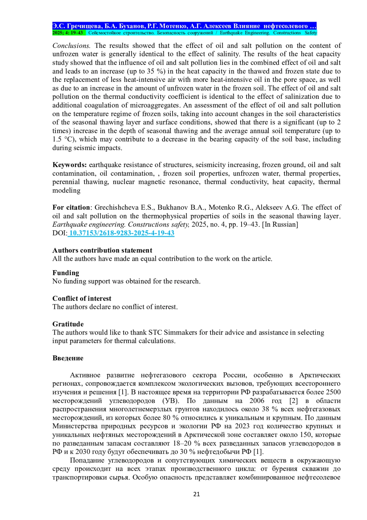 32. Гречищева Э.С., Буханов Б.А., Мухаметдинова А.З., Мотенко Р.Г. Особенности исследования фазового состава влаги мерзлых грунтов при нефтесолевом загрязнении // Арктика и Антарктика. 2025. № 3. С. 103-118. DOI: 10.7256/2453-8922.2025.3.75093