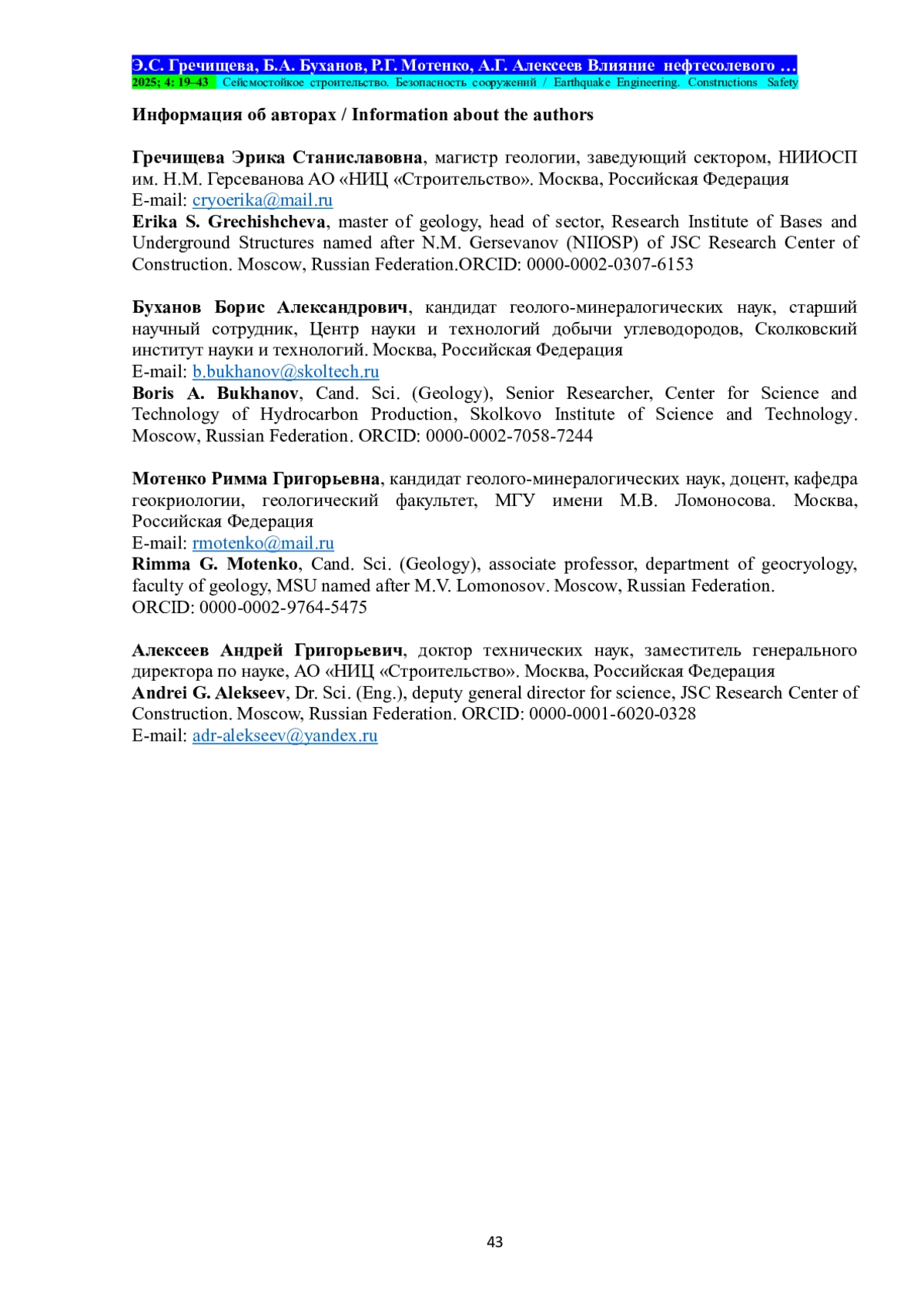 39. Ершов Э.Д., Нефедьева Ю.А., Мотенко Р.Г., Пармузин С.Ю. Прогноз изменения глубины сезонного оттаивания и промерзания грунтов под влиянием нефтяного загрязнения // Вестник МГУ. Серия 4. Геология. 2008. № 6. С. 47-50.